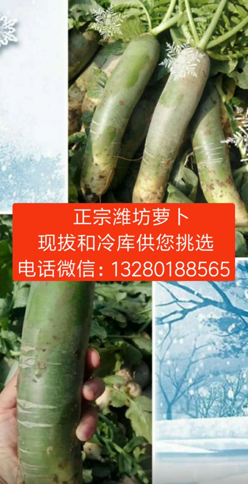 今天我们山东潍坊又降温了,这才是冬天的感觉啊。不过还好我们的潍坊萝卜有大棚,在大棚里不会挨冻。现在大棚里的潍坊萝卜吸收着大自然的精华。冷库的潍坊萝卜只能呆在冷库里。所以大棚的潍坊萝卜比这个冷库的潍坊萝卜价格偏高是原因的。但是现在很多客户很不理解的。为什么我们家的潍坊萝卜价格偏高,不如人家的潍坊萝卜便宜。这个价格战我们打不起。一分钱一分货这个是自古以来就有的。光凭这个价格就知道这个东西。天下没有免费的午餐。就算有免费的您感吃感拿吗?我们只能做到的就是保证正宗的潍坊萝卜和潍坊萝卜的斤数。至于别家的价格和我们无关。我们的价格在我们心目中是合理的。现在市面上潍坊萝卜参差不齐。而且有些外地的萝卜易混淆到市场上,冒充正宗潍坊萝卜,吃过正宗潍坊萝卜的人一尝便知。所以好与坏我们不便多说,您们自己一试便知!我们是真希望大家吃到我们正宗潍坊萝卜。只有正宗潍坊萝卜才有这个潍坊萝卜的营养价值!